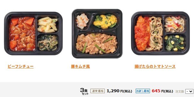 | 1セット(3食) | 1,290円 | 645円 | 215円 |